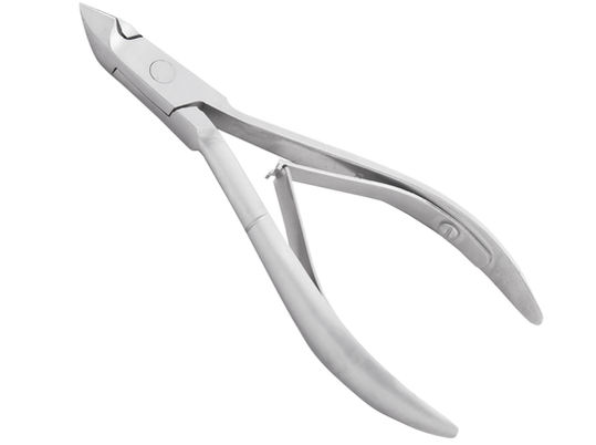 Кусачки для удаления кутикул, длина изделия 10 см., полировка матовая, длина режущей кромки 9 мм. Две пружины. Инструмент идеально подходит для индивидуального использования.